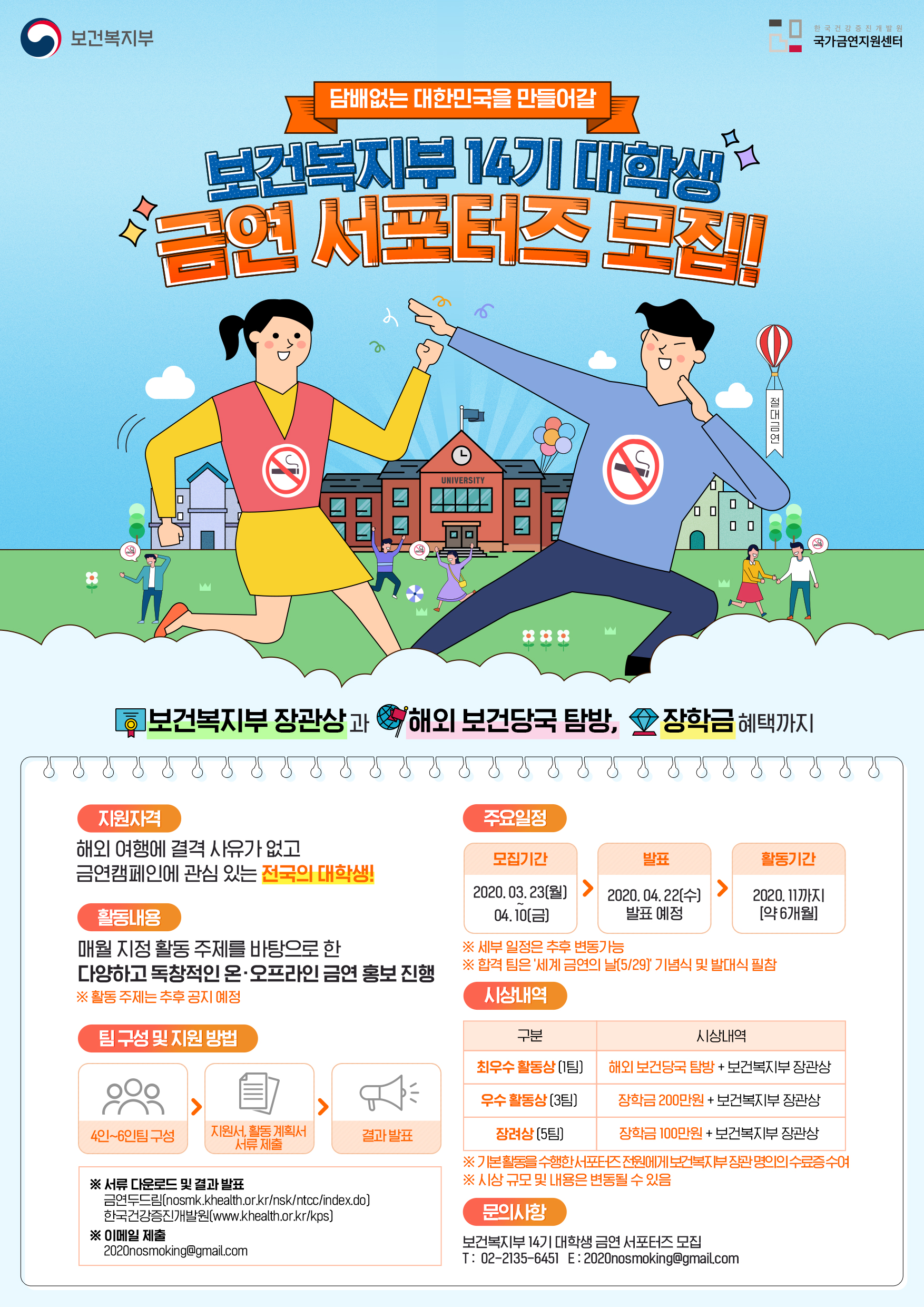 흡연예방 및 금연 문화 확산에 열정과 창의력을 가진 대학생 여러분의 많은 지원을 바랍니다.