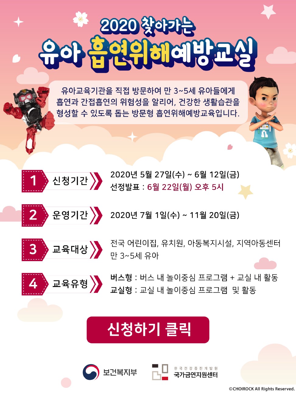 | 제목 | 2020년 찾아가는 유아 흡연위해예방교실 신청 안내 |