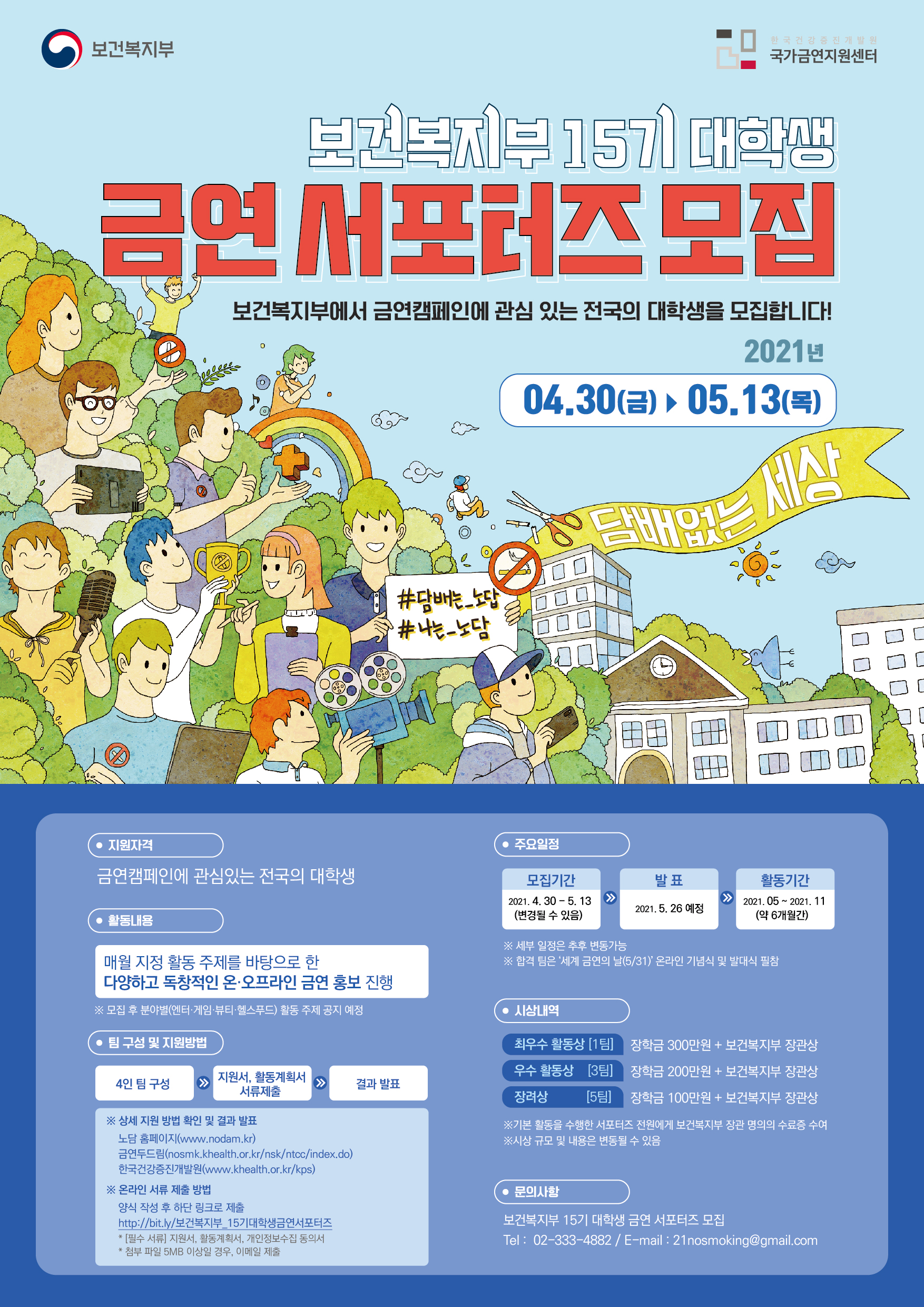 담배없는 건강한 대한민국 만들기에 앞장설 보건복지부 15기 대학생 금연서포터즈를 모집합니다!